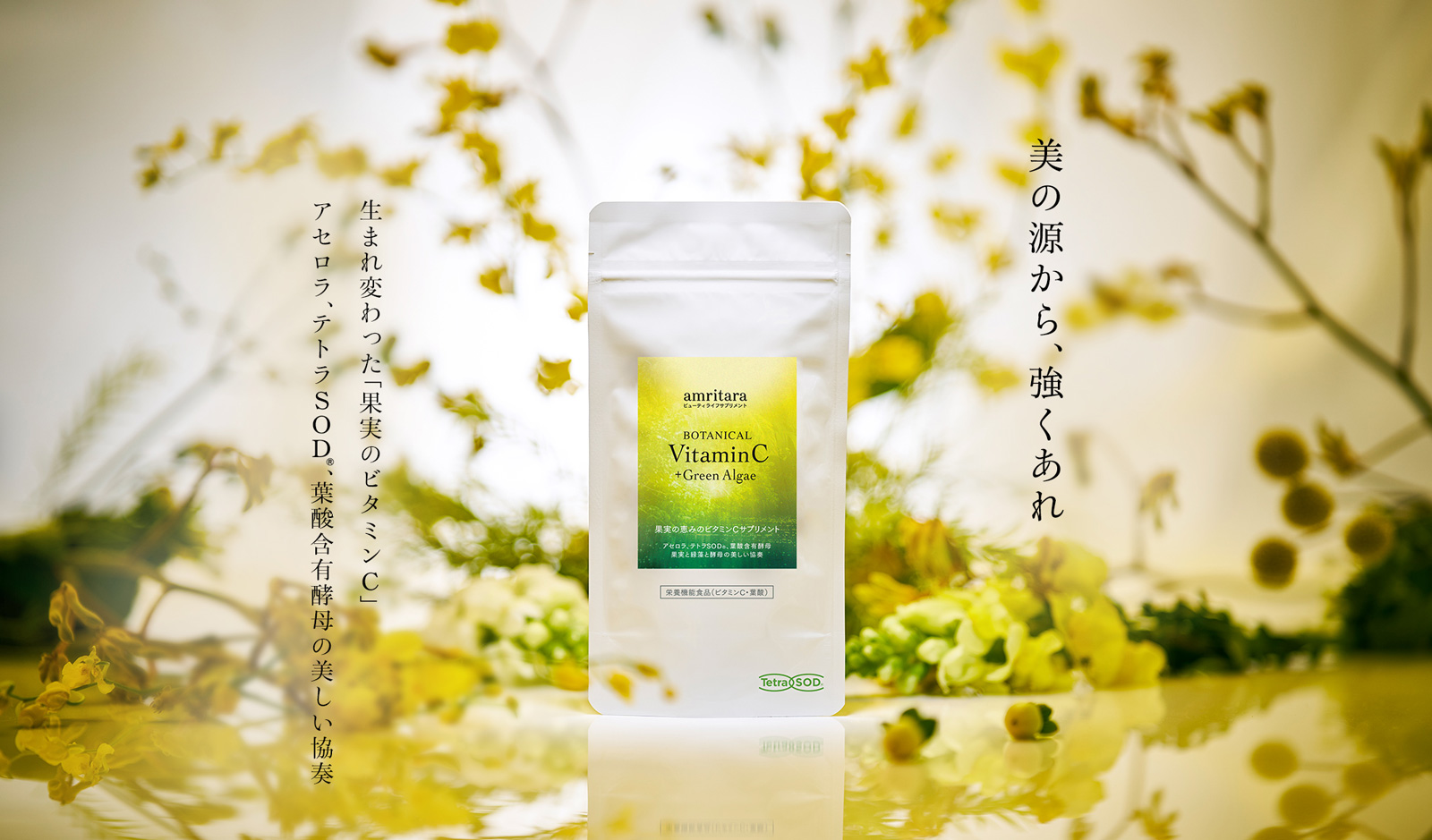 そして、体の中からは農薬不使用原料を用いた食品やサプリメントの力で美しく生きたい。