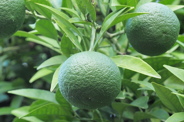 今回アムリターラでは、神山町のNPO法人「里山みらい」さんの取り組みに共感し、自然栽培のすだちを丸ごと購入。徳島県内で果汁にして、果皮は蒸留して精油やエキスを作りました。