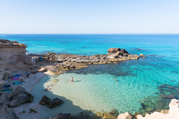 フォルメンテラ島は、ターコイズブルーの入り江が美しく、地中海特有の強い陽射しが降り注ぐ島で、過去にはボブ・ディランやピンク・フロイドも魅了されたと言われています。