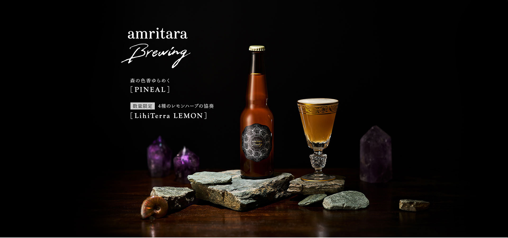 有機麦芽、有機ホップ、山麓の恵みの水を主原料に、アムリターラならではの特徴的な素材により、ビールのもつ可能性を切り拓き、新たな味わいの世界を創造します。3種の松の葉を使用した[パイニール]をラインナップの軸に据えて、他にも限定商品やコラボ企画などを準備していきます。食品素材だけでなく、サプリメントや化粧品にも使われる有用素材を用いるなど、醸造のスタイルやデザインの垣根を超え、価値ある醸造を提案していくとともに、ビールを飲む歓びを伝えるために、まだ見ぬ味わいと新鮮な驚きのある商品を販売していく予定です。