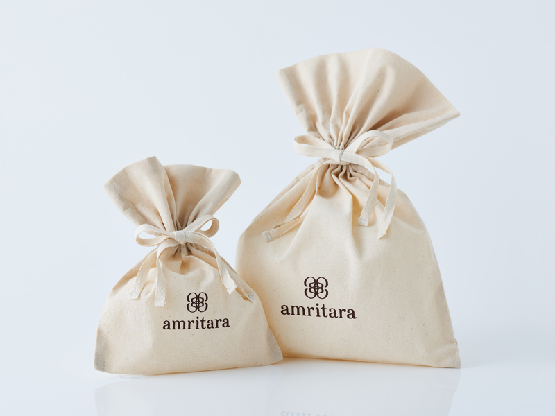 オーガニックコットンのかわいらしい巾着(大・小)をはじめ、様々な大きさに対応できるよう、