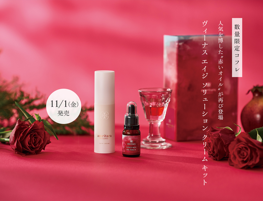 確かな保湿力でエイジングサイン*に挑む「エイジ ソリューション クリーム」と、このキットだけの限定美容オイル「ヴィーナス レッド オイル セラム」をセットに。豊かな潤いで肌を包み込みます。ブック型のスペシャルギフトボックスに入れてお届けします。