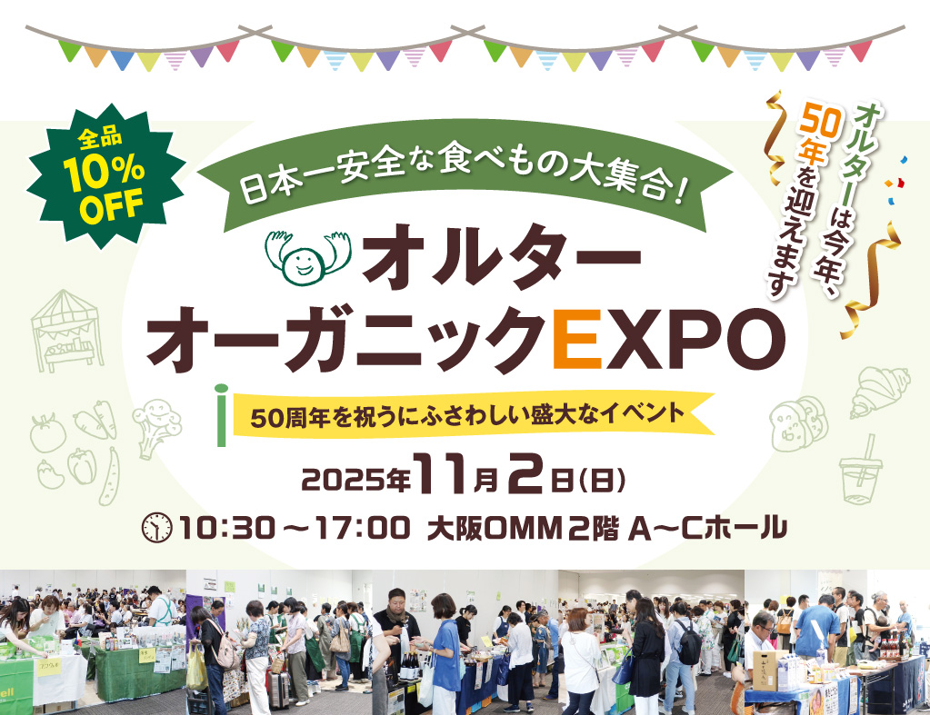 2025年11月2日(日)に大阪・天満橋駅すぐのOMMビル2階 A~Cホールにて開催される『オルター オーガニックEXPO』に、アムリターラが出店いたします。